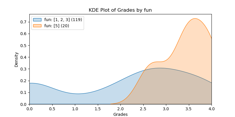 All questions were multiple choice. There were several types of questions: Yes/No, Radio Options (4 or 5), Range of 1-5, Checkboxes (check all that apply). Many of the columns were mapped to values 1-5, and others were 1-hot encoded so that the most answers could be numerical. Specifics are explained in the Data Description section below. The data were explored by dividing the answers into two groups, a left and right group. For example, for a Yes/No question (mapped to 1/0), we examined to see if the grades of the students who answered Yes