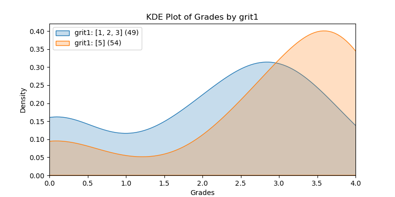 . When the values had a range, the grouping depended on the quantity of the selections and where differences were revealed. For example, grit1
